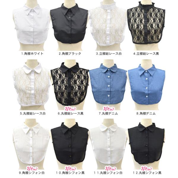 【インナー 小物 角襟 丸襟 立襟 スタンドカラー フラワー シフォン シンプル オフィスカジュアル 上品 きれいめ 総レース デニム 無地 ブラウス】