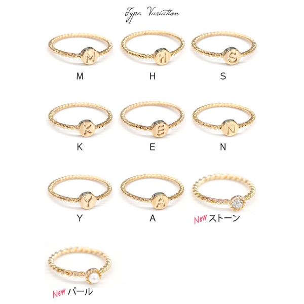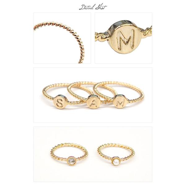 【リング 指輪 ファランジリング ミディリング 関節リング ピンキーリング レディースアクセサリー イニシャル ラインストーン パール ビジューストーン アルファベット 極細 ツイスト ゴールド 華奢 真珠 シンプル 10K k10 5号 10号 12号 英字 英語 文字 英文字 アンティーク】