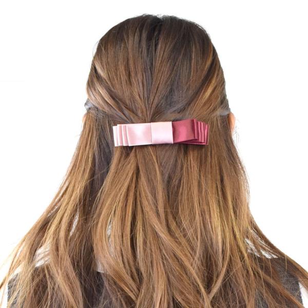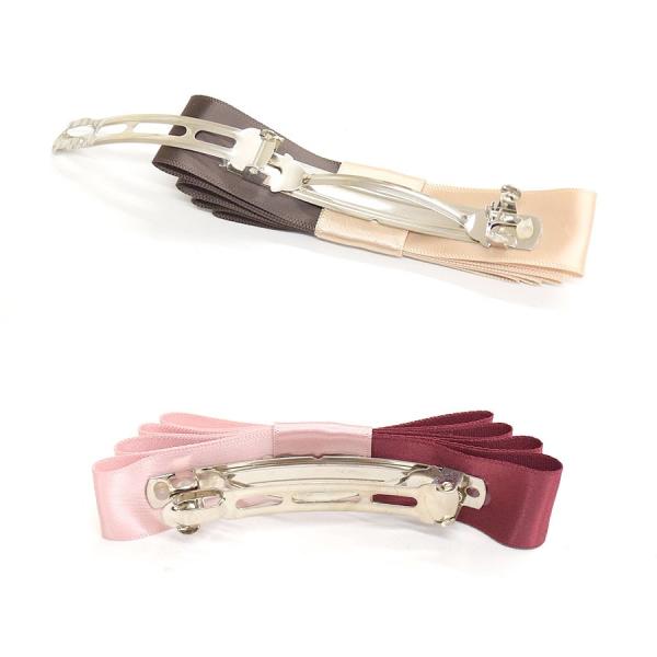 バレッタ 大きめ リボン ヘアアレンジ サテンリボン ヘアアクセサリー 結婚式 卒業式 ヘアクリップ ヘアピン バイカラー 送料無料 ポイント消化 ハレの日
