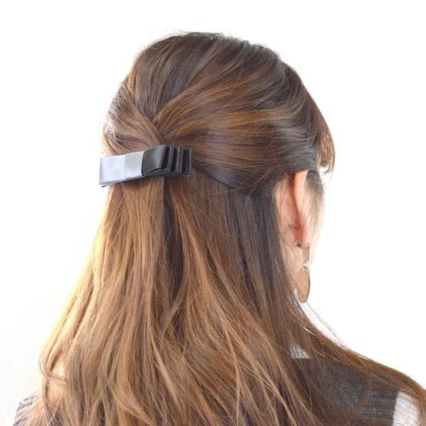 【ヘアバレッタ リボン サテン バイカラー バレッタ ヘアアクセサリー レディース ヘアクリップ ヘアピン 配色切り替え 配色切替 シンプル 大人 スタイリッシュ レイヤード 髪留め 髪飾り ヘアアレンジ シルバー】