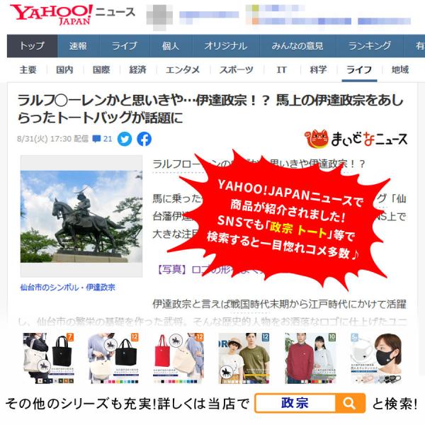 仙台を代表する政宗騎馬像をプリントしたキャンバストートバッグ☆