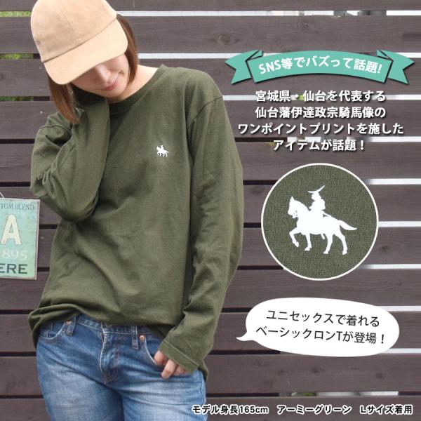 【ロンT カットソー Tシャツ 長袖 仙台藩 伊達政宗 騎馬像 ユニセックス レディース メンズ コットン 綿 ワンポイント プリント ゆったり 大きいサイズ シンプル 無地 杢 男女兼用 武将 歴史 歴女 戦国 独眼竜 仙台 宮城 東北 ご当地 お土産】