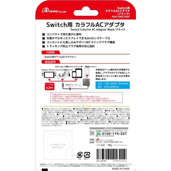 ●Switch用の2.0AのACアダプタです。手触り抜群のラバー加工を採用。