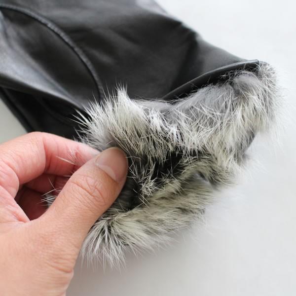レディース(婦人)羊革手袋(グローブ)ラビットファー ブラック 「美指-UTSUKUSHI(ウツクシ)」シリーズ