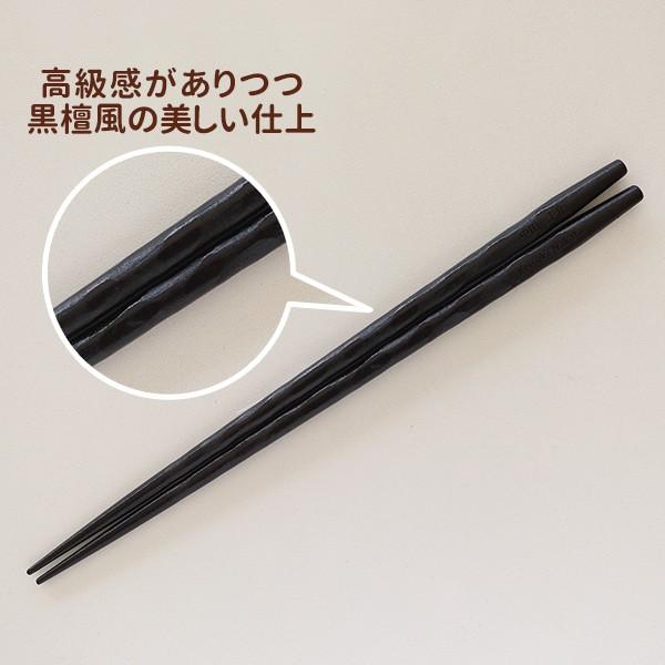 黒檀は食用の小さな実を付け、健康の象徴とされています。世界の三大銘木と称される黒檀風の仕上げが美しい高級感のあるお箸に健やかな健康を祈って。