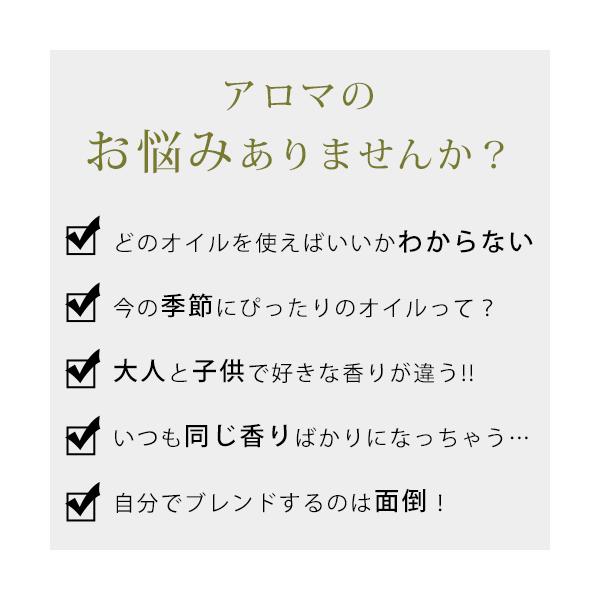 室内環境を整え、癒しの空間づくりの精油を中心に、5種類の精油を独自にブレンドしました。