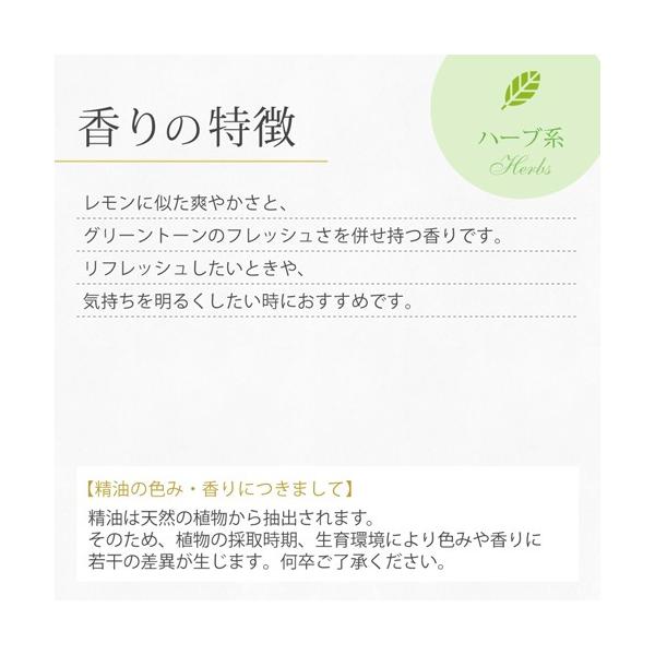 レモンに似た爽やかさと、グリーントーンのフレッシュさを併せ持つ香りです。