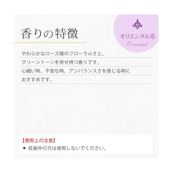 やわらかなローズ様のフローラルさと、グリーントーンを併せ持つ香りです。