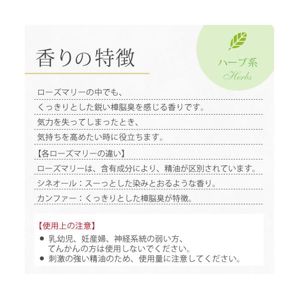ローズマリーの中でも、くっきりとした鋭い樟脳臭を感じる香りです。