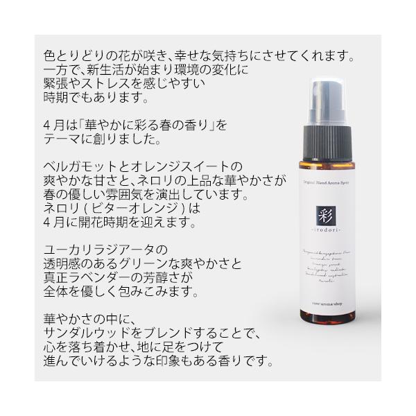 アロマスプレー 彩 irodori blend 30ml 4月 メール便可 12ヶ月のアロマスプレー 春 spring スプリング マスクスプレー ルームスプレー ネロリ ハーブ いろどり