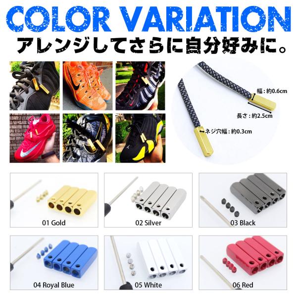 アグレット 靴紐 金具 金属 ブラック ゴールド シルバー 4個セット 工具付