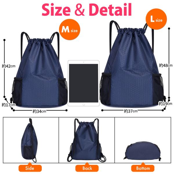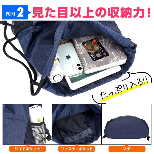 [商品名] ナップザック ジムバッグ シューズケース 大容量 撥水