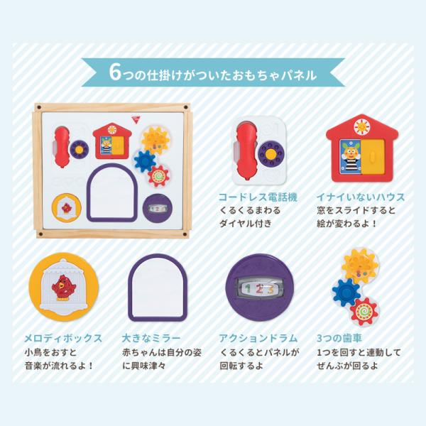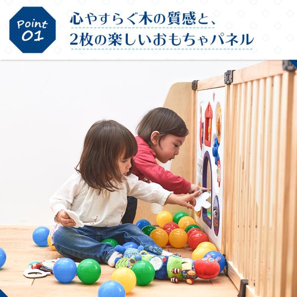 ベビーゲート 置くだけ ロングタイプ 木のキッズパーテーション おもちゃパネル付き 木製 日本育児