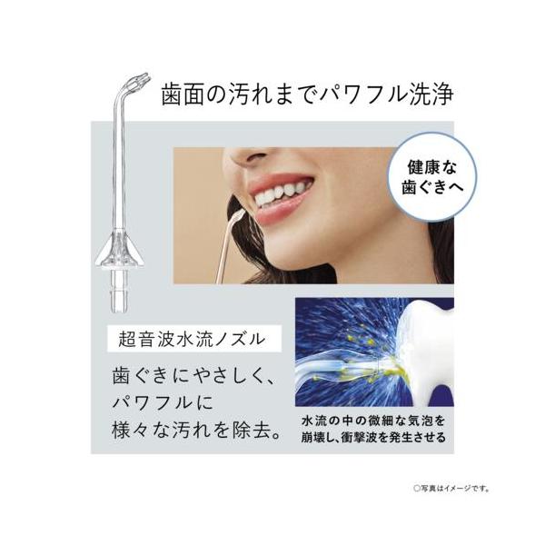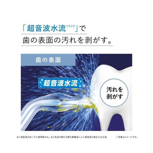 ■パワフルなのに歯ぐきにやさしい「超音波水流」歯ブラシでは取り切れない歯周ポケットや歯間の汚れまで、しっかり洗浄。たっぷり約3分使える、超音波水流・大容量据え置きタイプ■歯磨きでは取り切れない歯周ポケットや歯間に残った汚れを強力に除去ジェットウォッシャーなら水流の力で歯磨きでは取り切れない歯周ポケットや歯間に残った汚れを強力に除去します。■大容量タイプだから、1回の給水で最大3分洗浄可能(超音波水流使用時)半透明で水の残量がわかるタンクは、約600mLの大容量。超音波水流ノズル使用時には、1回の給水で約3分使用可能。食洗器にも対応しています。(タンクのみ)