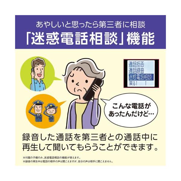 ■コンパクト設計ながらもあんしんの迷惑電話防止機能を搭載した電話機■ボックス型の親機を電話線に接続すれば、コードレス子機を使いたい場所に設置してお使いいただけます※親機に通話機能はありません。■子機が光って分かりやすい「着信お知らせLED」※親機は電話コードとACアダプタ、子機充電台はACアダプタと接続が必要です。