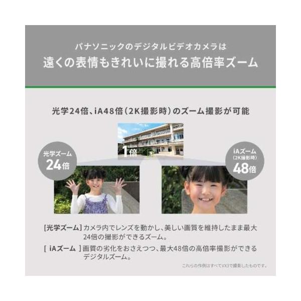 ■子供の動きと表情を明るく鮮やかに記録■新搭載「高画質モニター」や「手ブレ補正」「高速AF」で上質な撮影可能■4K広角撮影、あとから映像編集も可能■編集後の手ブレ補正、追っかけ、スロー&クイック、ズーム機能等幅広い編集機能搭載■内蔵メモリー無し