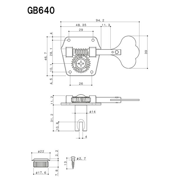 【信頼のゴトーペグ】ベース用ペグ 片側 4弦用セット「 GB640/Nickel/L4」