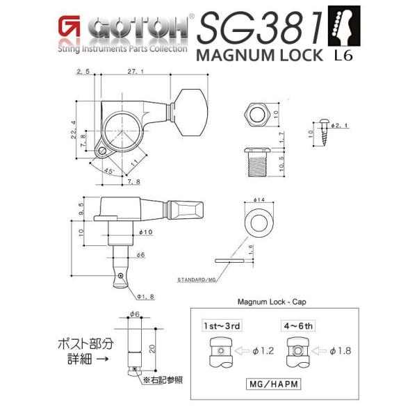 ゴトー ギター ペグ GOTOH SG381 MG 07 C L6 クローム マグナムロック 片側 6個セット 【SG381MG-07/C/L6】