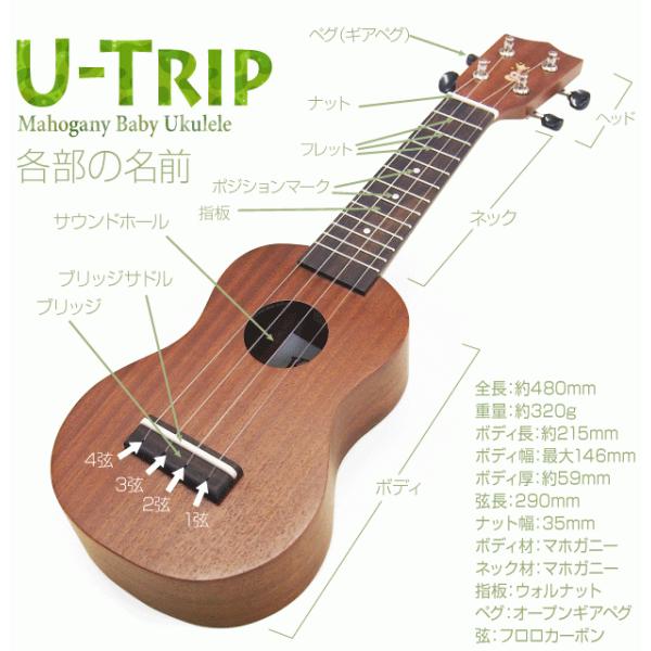 キワヤ ウクレレ U-Trip ベビーサイズ 初心者入門8点セット マホガニー 弦高調整済(子供・ミニサイズ・小型)(トラベル)(フェイマス)(u)