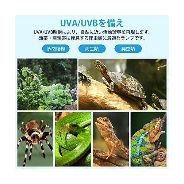 ・【2つの電球付属(25Wと75W)】 亀の飼育には、身体を温める為のバスキングライトと体内のビタミンD 生成の為のUV(紫外線)ライトの2種類が必要です。この両生類用ライトは熱帯・亜熱帯に棲息する爬虫類に不可欠なUVAとUVBを照射するるランプです。また、口金はE27です。蛍光灯、白熱灯、セラミック電球、UVランプ、ハロゲンランプ、LEDなどの他のE27電球にも適用できます。