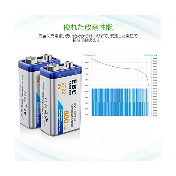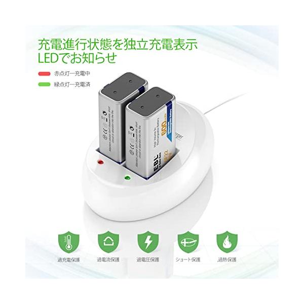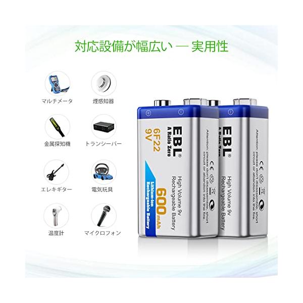 EBL 9V電池 充電式 2本電池充電器セット 9V充電池 600mAh 006p エネループ カメラ/時計/ラジオ/おもちゃ/ギター/屋内煙探