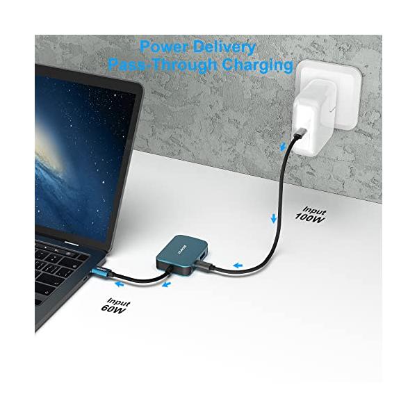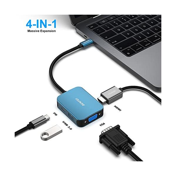 BENFEI 4in1 USB C ハブ、USB C-HDMI VGA USB3.0 PD充電アダプタ、Thunderbolt 3/4 互換 タ