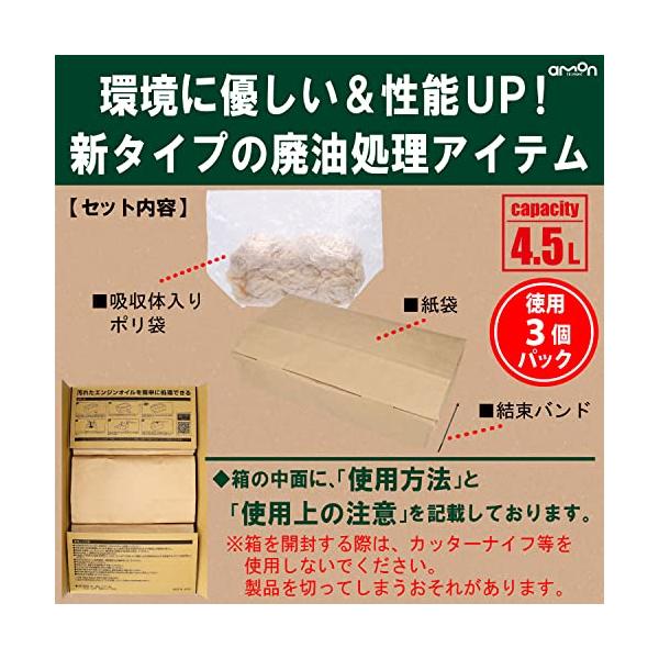 エーモン(amon) ポイパック 廃油処理箱 4.5L 車バイクのオイル交換に 可燃ゴミとして処理が可能 3個パック 4992