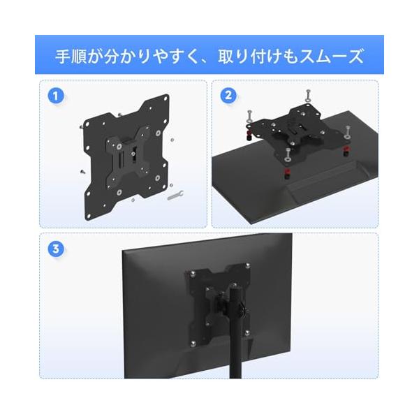 ・【頑丈なスチール構造】高品質の合金鋼を使用しており、高い耐久性を実現。最大60KGまでの重量をしっかりと支えるため、テレビやモニターの設置に最適な信頼性を提供します。ご利用の際は、テレビやモニターの重量が耐荷重を超えないようご確認ください。