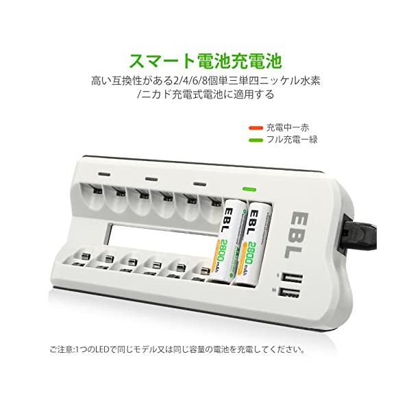 EBL 単3充電池充電器セット 8スロット充電器+単三充電池(2800mAh*8)セット 単3/単4電池 充電式 ニッケル水素/ニカド充電池に対