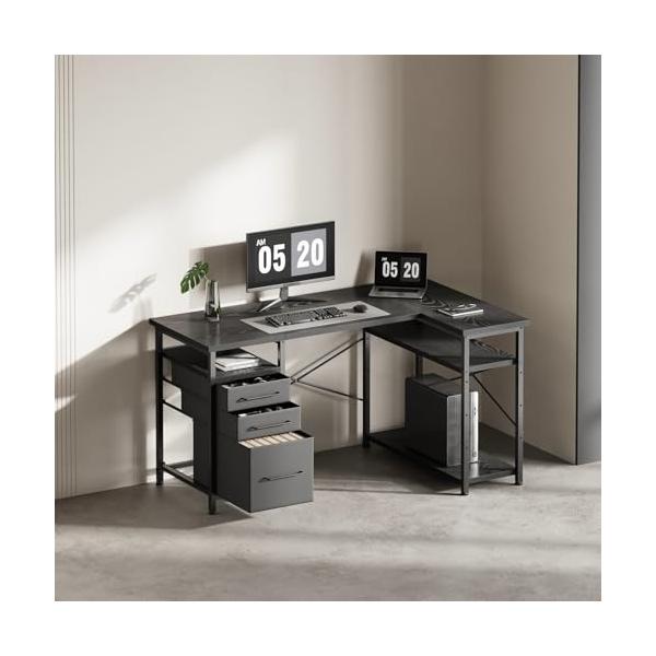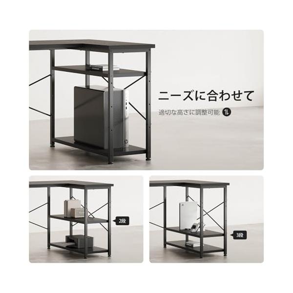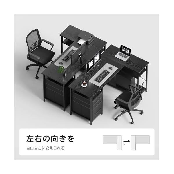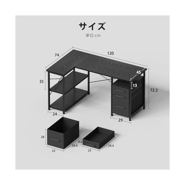 ・【左右調整可能】デスクトップは組み合わせ式で、左右の位置調整が可能です。調整により、小さな板と下の棚も連動して位置変更できます。引き出しの位置は左側または右側に取り付け可能で、簡単に設置できます。