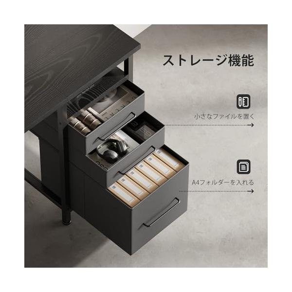 ・【最強の収納機能】サイドラック、引き出しを搭載し、本や辞書、CDなどの収納が非常に便利です。収納一体型で空間利用率もUP!仕事用はもちろん、子供の勉強机としても最適です。