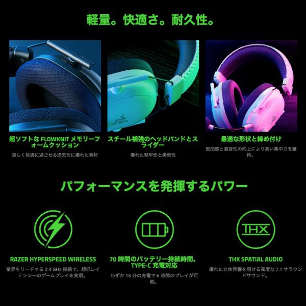 Razer BlackShark V2 Pro アップグレードモデル Bluetooth 5.2 / 2.4GHz ワイヤレス 両対応 ゲーミングヘッドセット ブラック