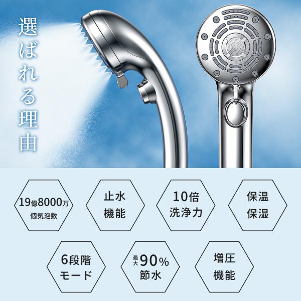 【最新モデル】シャワーヘッド マイクロナノバブル ウルトラファインバブル 節水シャワー 6段階 ミスト 増圧 手元止水 高洗浄力 毛穴汚れ除去 美肌美髪 新生活