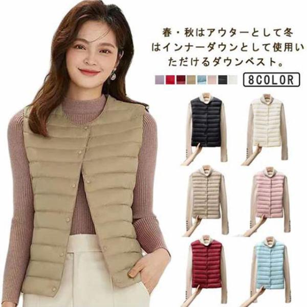 ダウンベスト インナーダウン キルティングベスト レディース ライトダウンベスト ライトダウン アウター 軽い 暖か 防寒 薄い 無地 シンプル ショ