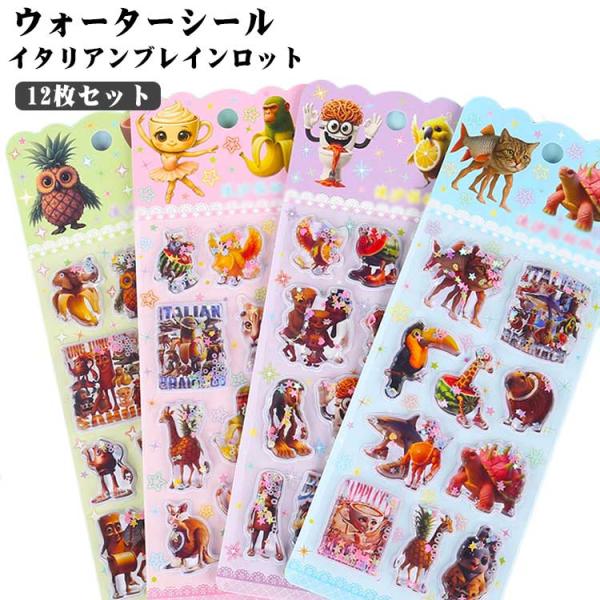 12枚セット ぷっくりシール ウォーターシール 水入りシール DIY用 3D 可愛い ウォーターシール ご褒美シール 装飾用 イタリアンブレインロット