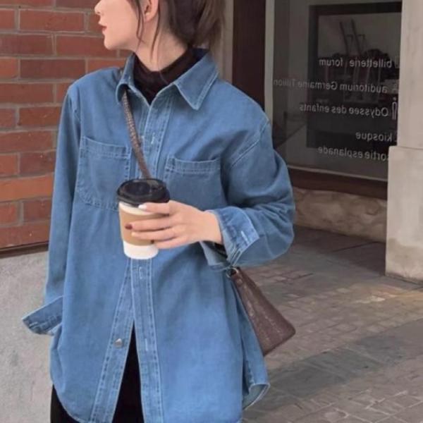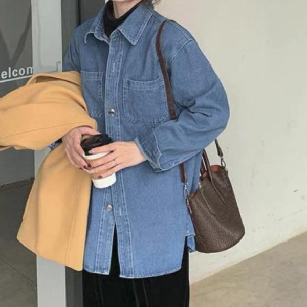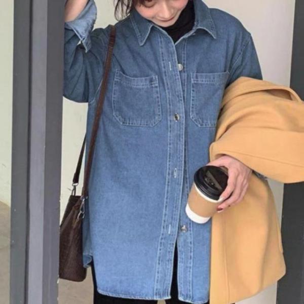 デニムシャツ レディース 春秋 カジュアル シャツ おしゃれ レディース ブルー 大きいサイズ デニムシャツ 羽織り デニムジャケット 長袖 デニム