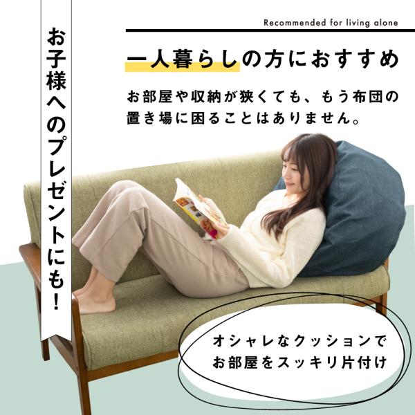 冬場に活躍する分厚い掛け布団が、リビングでオシャレなクッションに早変わり!ソファとしても使えるオシャレで便利な布団収納袋です。