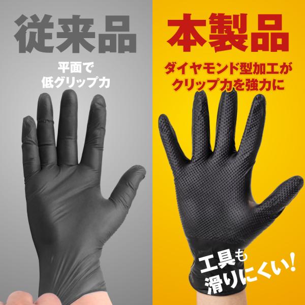 通常の使い捨てニトリル手袋に比べて耐久力が違います。