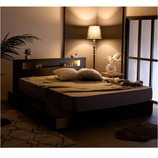 ベッド クイーン フレームのみ 収納付き クイーンベッド おしゃれ 宮付き すのこベッド すのこ 照明付き