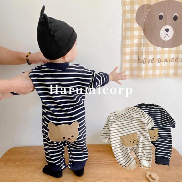 ベビー ロンパース 長袖 男の子 女の子 新生児 赤ちゃん ベビー服 春 秋冬 ボーダーベビーロンパース 綿 長袖ロンパース 子供服 お部屋着 冬用 出産祝い ギフト