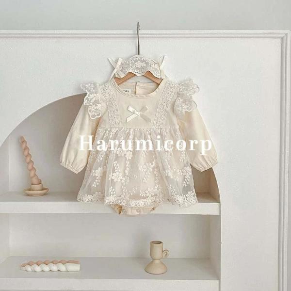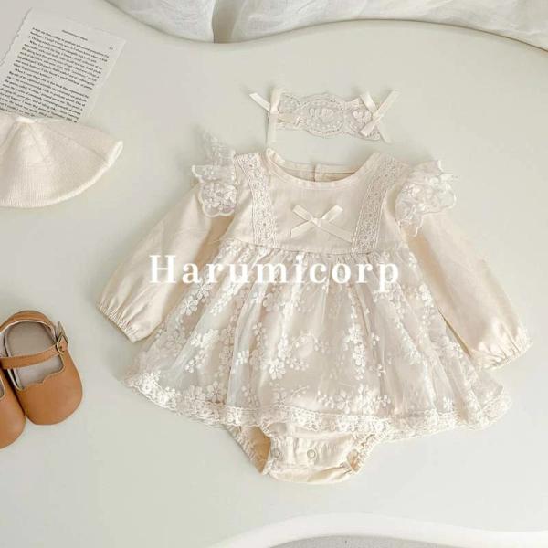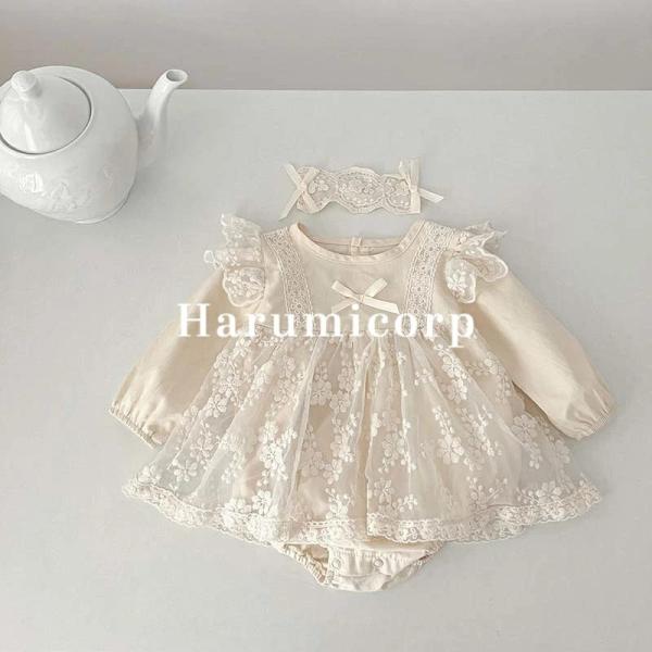 セレモニードレス 退院着 ヘアバンド付き ロンパース 長袖 綿100% ベビー服 女の子 春 秋 冬 新生児 服 お宮参り カバーオール キッズ レースワンピース 子供服 韓国 可愛い 洋服 赤ちゃん 保育園 66cm 70cm 80cm 90cm お食い初め ギフト 出産祝い プレゼント 1歳 誕生日