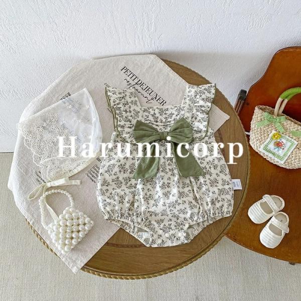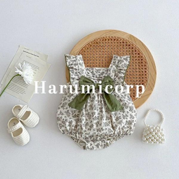 セレモニードレス 女の子 春 夏 新生児 退院 お宮参り 蝶結び 緑 花柄 退院着 春夏 ロンパース ベビー服 赤ちゃん 出産祝い プレゼント 出産準備 ギフト 子供服 夏用 綿 シンプル 写真撮影 66cm 73cm 80cm 90cm