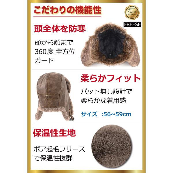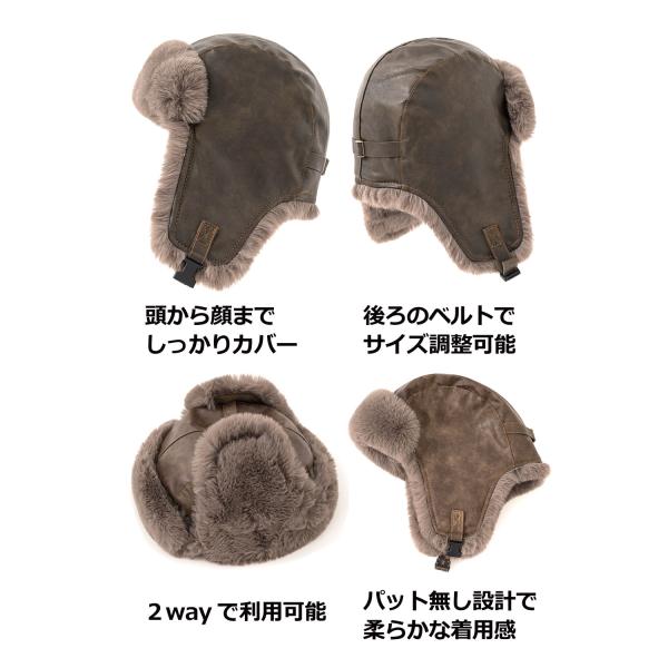 帽子 防寒 ボンバーハット 冬 ボア起毛 耳当て付き レザー調 フライトキャップ メンズ