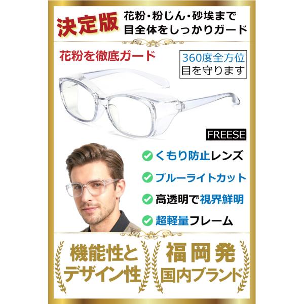 花粉ゴーグル 花粉症 メガネ 曇らない UVカット ブルーライトカット 飛沫 粉塵 対策 透明 通勤通学 自転車 バイク スポーツ 男女兼用 ケース付