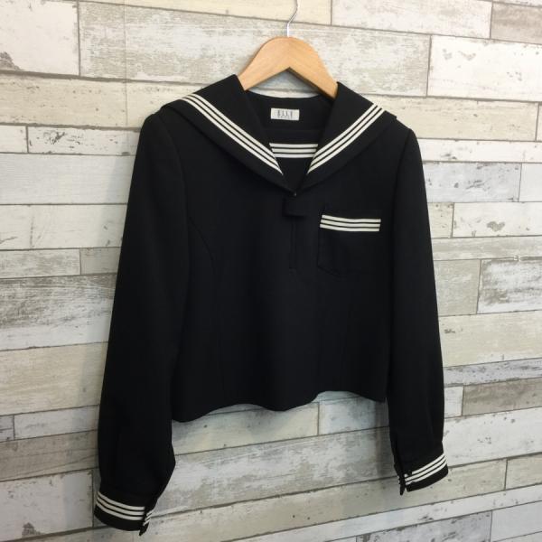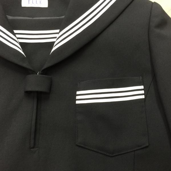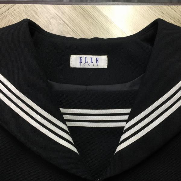 ランクB セーラー服 160A ELLE 黒 スリムシルエット ストレッチ ウール50% 上着 中学生 高校生 女子制服 中古学生服 中古制服