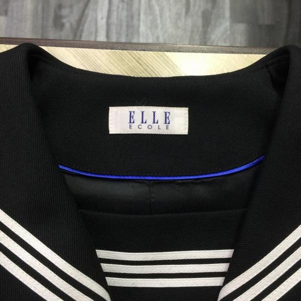 ランクB セーラー服 160A ELLE 黒 スリムシルエット ストレッチ ウール50% 上着 中学生 高校生 女子制服 中古学生服 中古制服