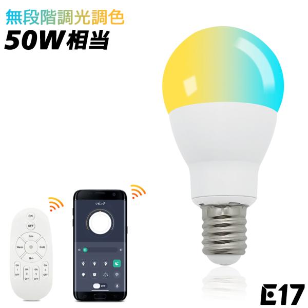 LED電球 E17 調光調色 50W相当 ミニクリプトン形 リモコン電球 スマート電球 広配光 無段階調光 遠隔操作 アプリ操作 リモコン操作