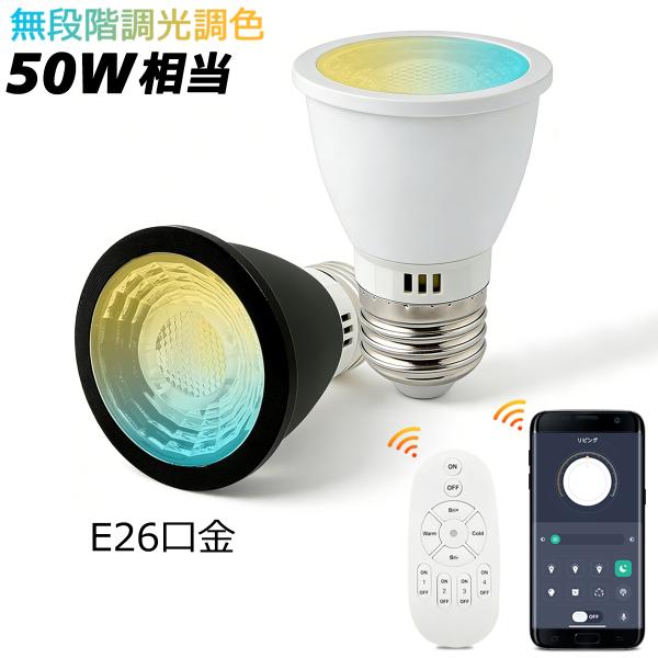 LEDハロゲン電球 E26 無段階調光調色 50W相当 スポット照明 リモコン電球 スマート電球 60°配光角 高輝度610LM アプリ操作 リモコン操作