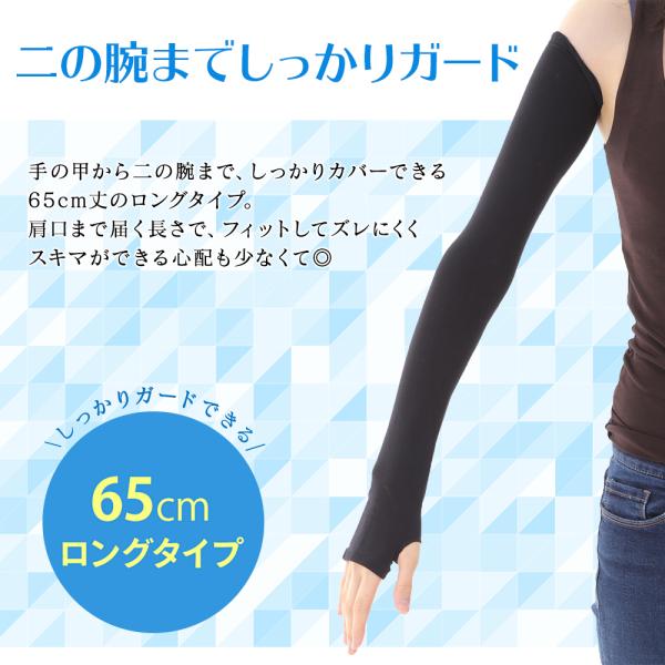 アームカバー UVカット レディース ロング 冷感 スポーツ 二の腕 日焼け対策 黒 涼しい アームウォーマー ブラック UV 手袋 腕カバー 紫外線 ゴルフ テニス 65cm