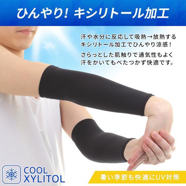 手首丈の25cm、ひんやり涼しい、UPF50+ UVカット加工 キシリトール加工